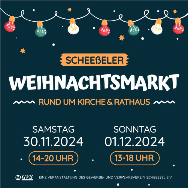 Auf der Zevener Straße und dem Rathaus Parkplatz am Untervogtplatz veranstaltet der Gewerbe- und Verkehrsverein Scheeßel e.V. nach 2 Jahren Pause wieder den beliebten Weihnachtsmarkt.