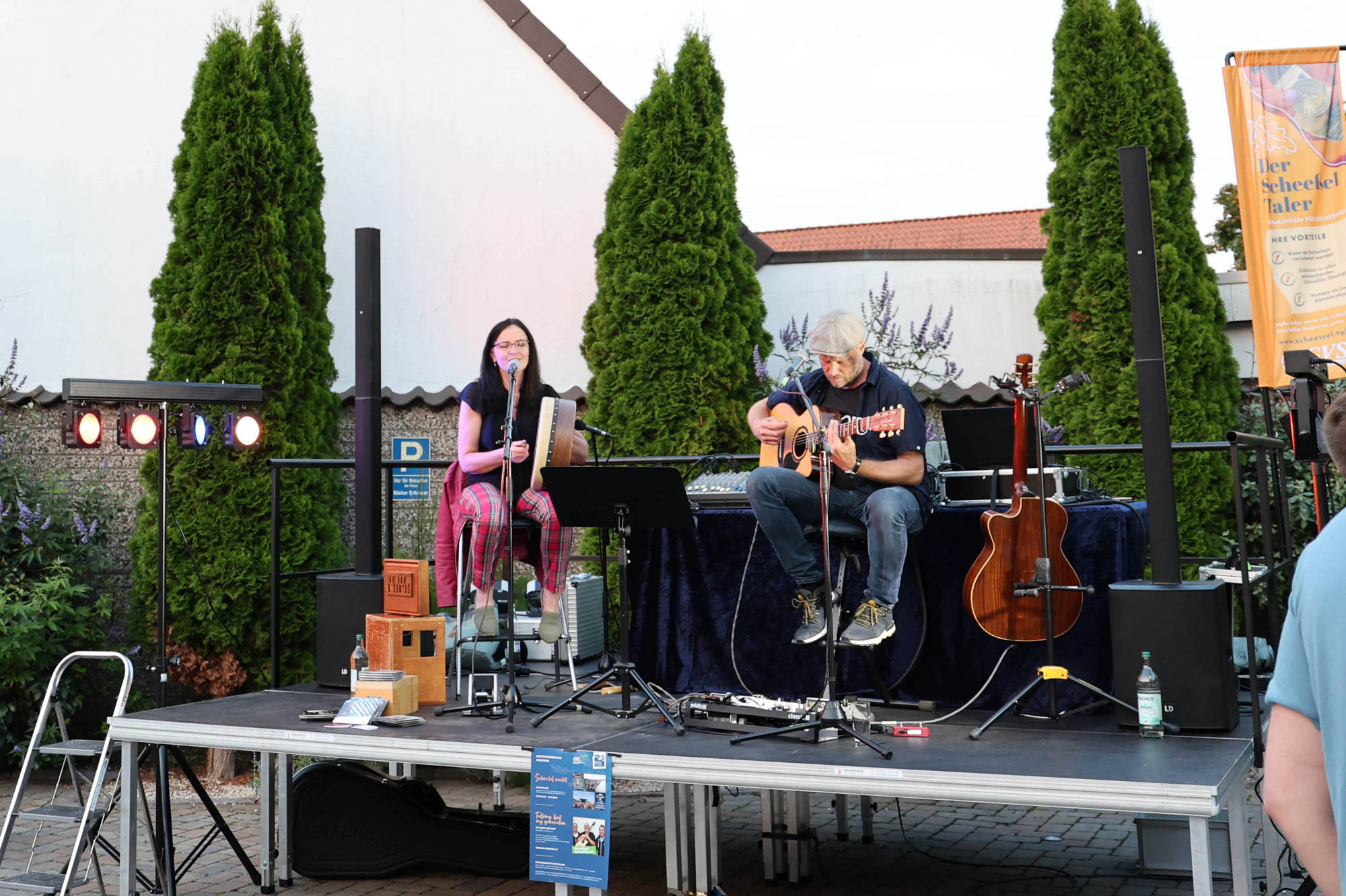 Neben Gastronomie, Kunsthandwerk, Vereine und Scheeßels Gewerbetreibende wird auf dem Rathaus Parkplatz die neue Bühne der Gemeinde das Zentrum für Unterhaltung und Auftritte sein.